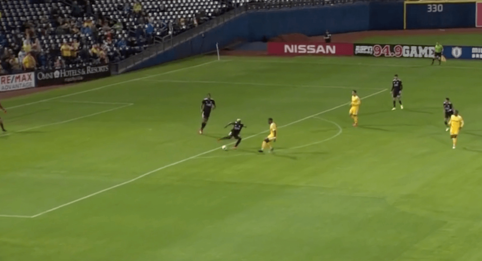 There is something to be said for opening the team up to counter-attacks. Had the ball gotten out, Nashville would have had only five defensive field players – the defenders aside from Kimura (though his motor would have allowed a recovery) and the central defensive midfielders – back in the instance of Loudoun popping it back over the top. Teams that have that ability are going to see NSC be a little more conservative – and to be fair the team backed off the heavy press once they had a 2-0 lead in the game.