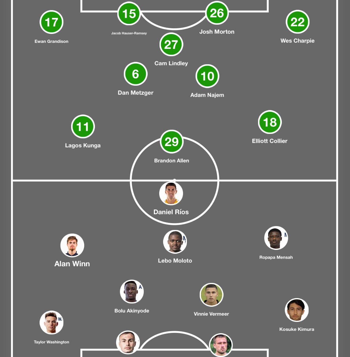 Instead, it was Nashville the rest of the way, with a 4-2-3-1 system reinvigorating Nashville’s attack up the flanks, providing plenty of space for Winn and Ropapa Mensah to get forward and feed Ríos.