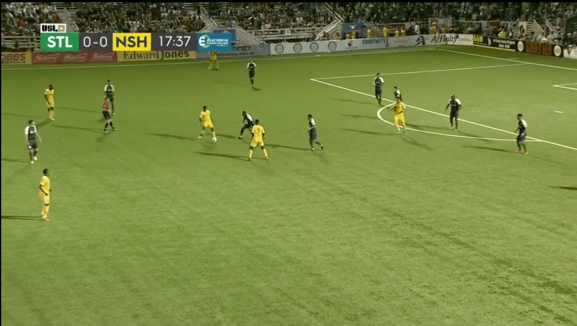 Saint Louis certainly wasn’t letting Nashville’s strikers beat them centrally. However, you can see that there is probably opportunity in the wide areas (even if STLFC is also sinking its wingers into that space).