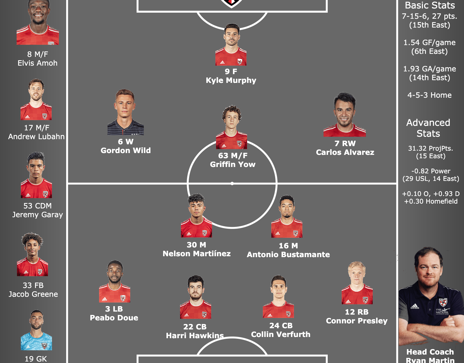 Opponent: Loudoun United FC (7-15-6), 27 points, 15th place East. 31-32 ProjPts, 15rd in USL East power ratings and 29th in combined-table Pure Power.