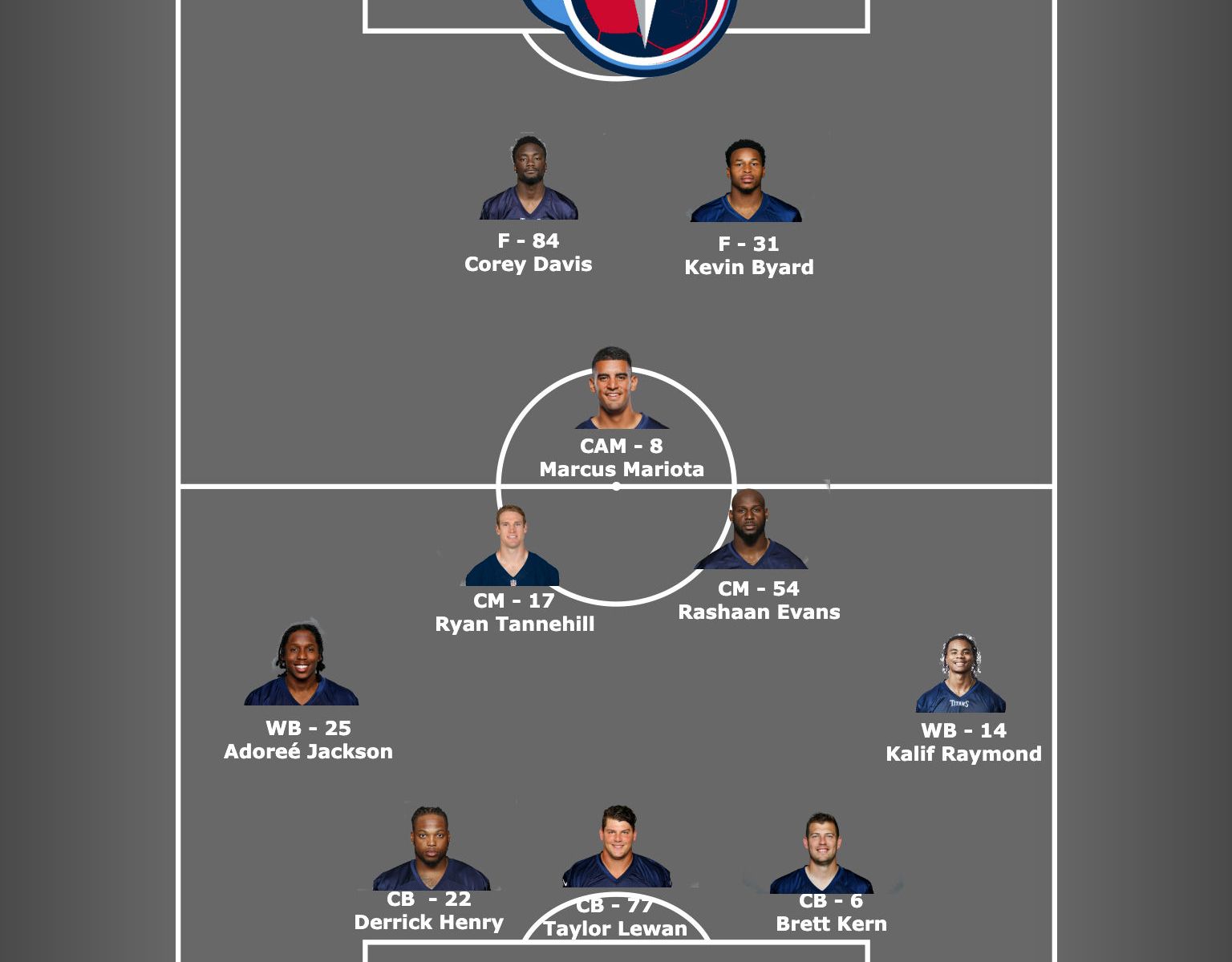 CB – Derrick Henry, Taylor Lewan, Brett Kern. Three very different players populate the backline. Henry has the size and strength to take on all comers defensively, but he’s also most comfortable with the ball, so he can be our defender who gets forward – Virgil Van Dijk style.. Taylor Lewan is certainly big and strong, and he brings a little of that borderline-dirty play needed to mess with the heads of opposing strikers. Kern brings the big leg, and he can play the ball long out of the back because TBH I don’t think we’re gonna be able to possess a whole lot.