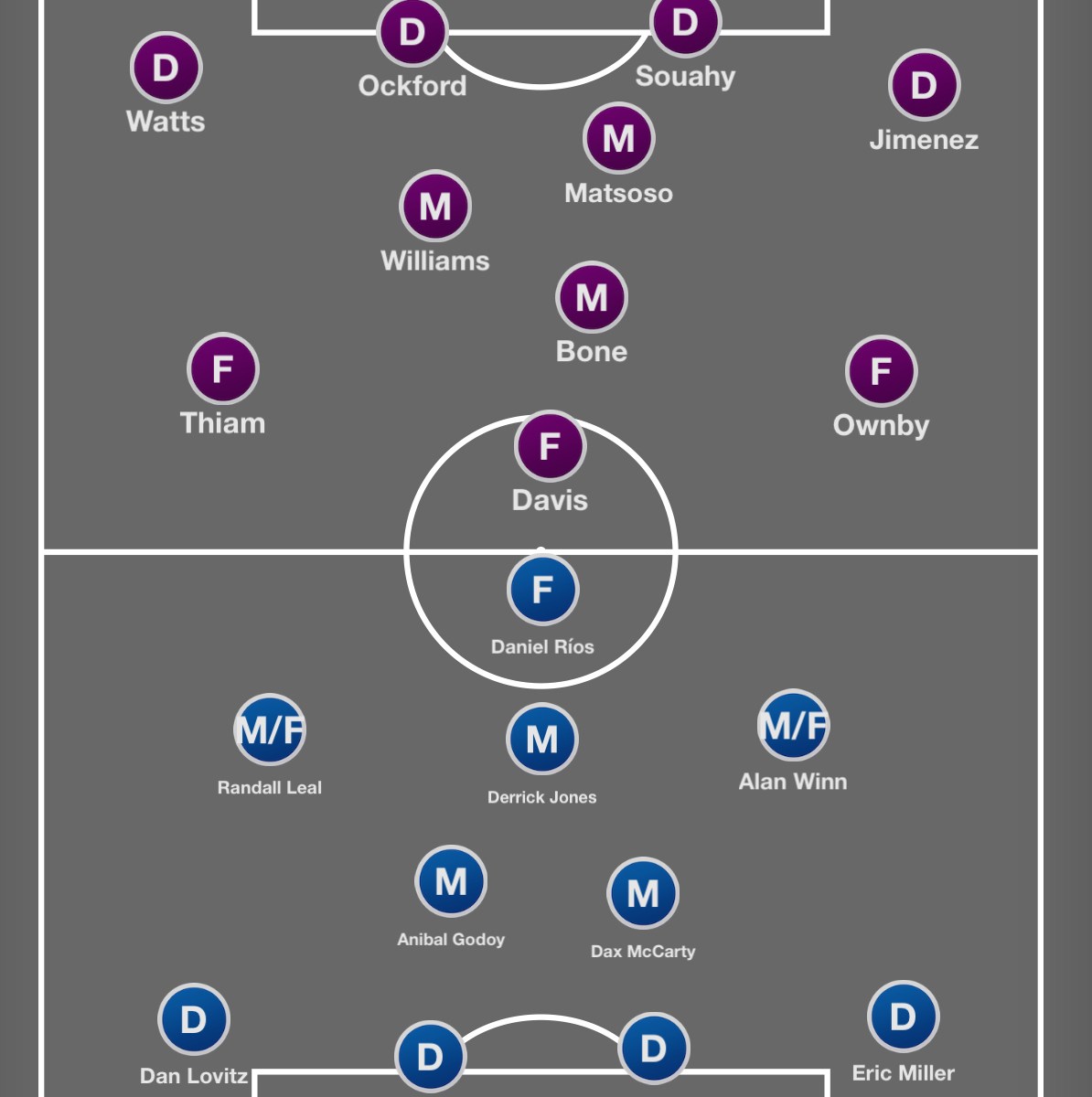 - ON Tanner Dieterich, OFF David Accam