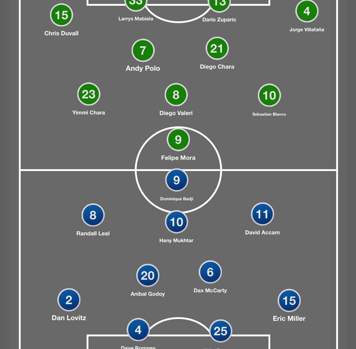 - 63′ POR Substitution – On 22 Christhian Paredes, off 8 Diego Valeri