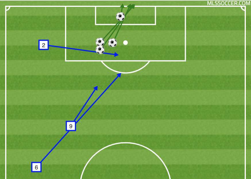 Crosses can obviously lead to goals, but they’re generally a low-probability tactic. Letting a guy launch even from the edge of the penalty area isn’t the worst outcome. Crosses are even less successful when a stout defense like Atlanta closes down open grass in dangerous areas, and tracks runners into the box. Certainly the vaunted Five Stripes wouldn’t be caught ball-watching.
