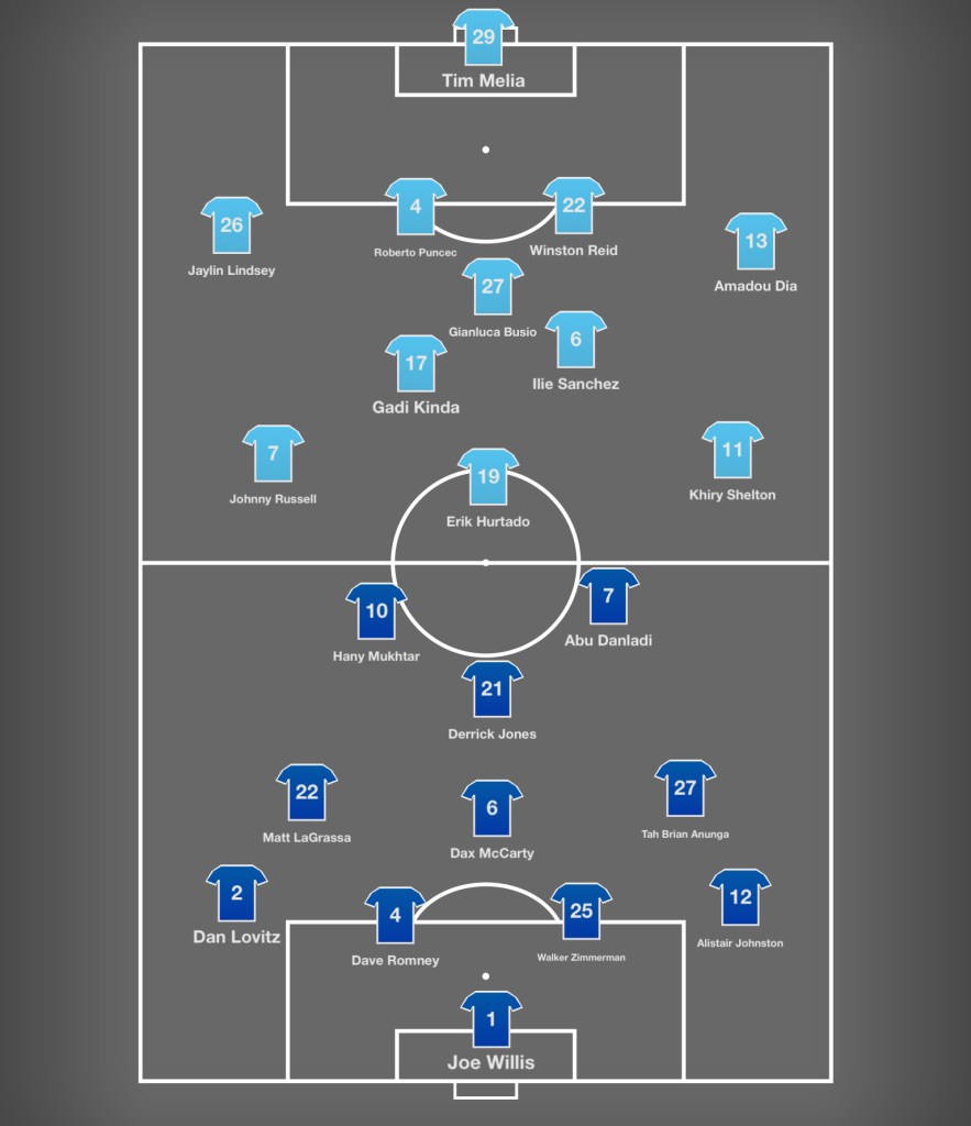The continued absence of Godoy leads me to believe there will be an attempt to start with the former, and Matt LaGrassa and Tah Brian Anunga will be defense-first support for Dax McCarty since neither individual can replace what Godoy brings. Sacrificing a bit of offense for defense has been a necessary even in recent weeks, as we’ve seen. That concept also gives Gary Smith the flexibility to sub Cádiz into the game while maintaining tactics in the 4-3-3, or replacing one of the defensive midfielders with him and going with the 4-2-3-1, depending on the needs when he’s ready to go into the game.