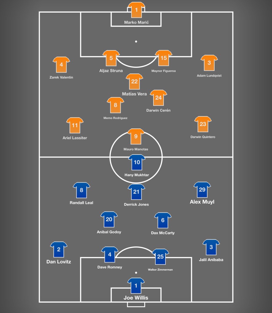 Elis’s former partner on the wing, Darwin Quintero, has carried much of the load and will probably bear an even larger burden over the rest of the year, with midfielder Memo Rodriguez – the more attacking of the CMs in a typical Tab 4-3-3, for those who are familiar with his (relatively defined and simple) tactical approach from watching USYNTs over the years – and striker Mauro Manotas tasked with much of the finishing. Ariel Lassiter and Niko Hansen will likely rotate through the opposite winger position.