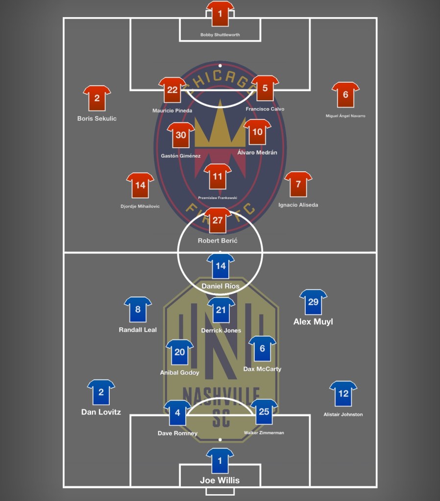 Daniel Ríos opened the scoring, heading home a bounced Randall Leal cross at the conclusion of a long set-piece situation to give the hosts the 1-0 lead. As has happened too frequently in recent games, though, NSC allowed Chicago an equalizer before the first half expired. Fullback Boris Sekulić latched onto a throughball when Nashville’s settled defense left him unmarked on the edge of the box, and hammered home past Joe Willis.