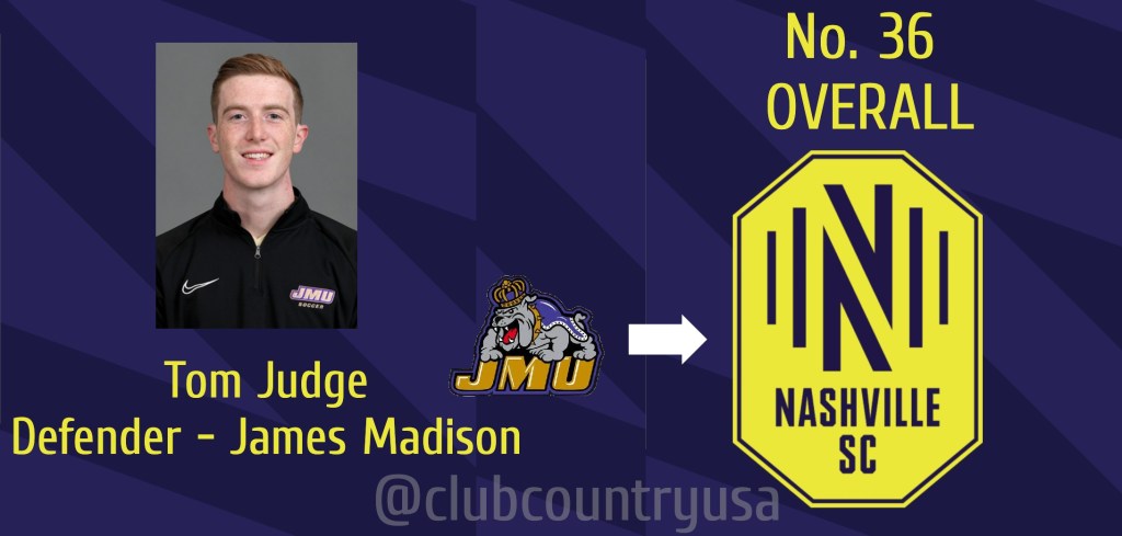 Nashville SC keeps it in The Commonwealth for its second selection in the 2021 MLS SuperDraft: James Madison defender Tom Judge is Mike Jacobs’s pick with the No. 36 overall selection.