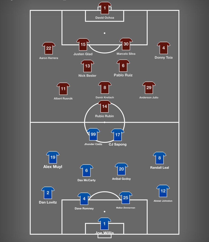 - Get shots on target. I’ve noted that I really like Ochoa’s potential… but the numbers don’t really lie: he’s a below-average MLS goalkeeper at this point. Forcing him to make the saves is probably worth the risk of an offensive opportunity fizzling out. This one calls for Leal bombs.