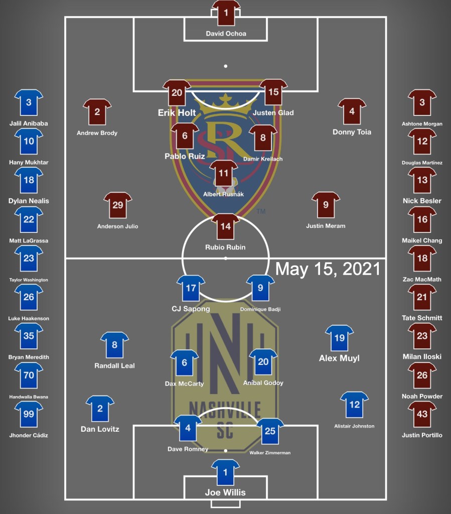 It was a quiet offensive game for both teams, with many of the best chances in the first half generated from set pieces. Things opened up a bit more in the second half, with a 53rd-minute chance from Nashville striker CJ Sapong blocked at the top of the six-yard boc by RSL defender Erik Holt. That sent a message that tere was a little more offense in the game, and what little there was came from the squad wearing is Vibe II blue jerseys for the first time this season.