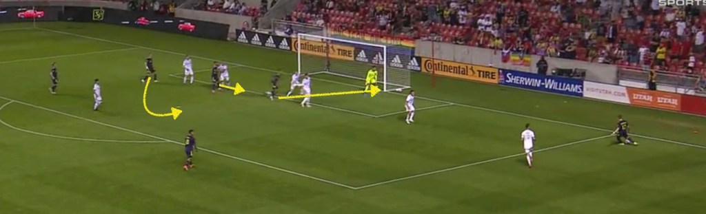 However, it does seem like Johnston’s decision-making after opening space for himself left something to be desired. He has plenty of opportunity to take at least one more touch here, and bang a ground pass into a forest of teammates. Given the options to get onto the end of the cross, it would have made even more sense than just the typical “a pass from a more dangerous area to the penalty spot is better than a cross” considerations.
