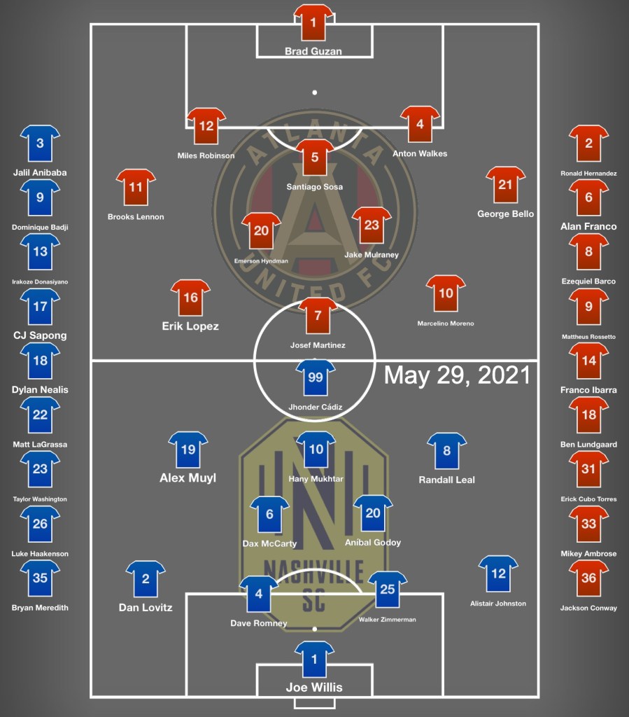 - 6′ ATL GOAL – 10 Marcelino Moreno (right foot), assisted by 12 Miles Robinson (longball over the top)