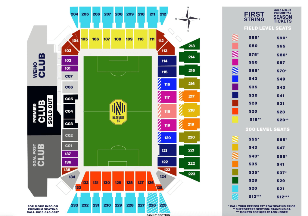Nashville SC today released mounds of information about season tickets heading into the club’s first year in its purpose-built soccer stadium after two years as a tenant in the Tennessee Titans’ Nissan Stadium. Here are the price points for the various season-ticket packages: