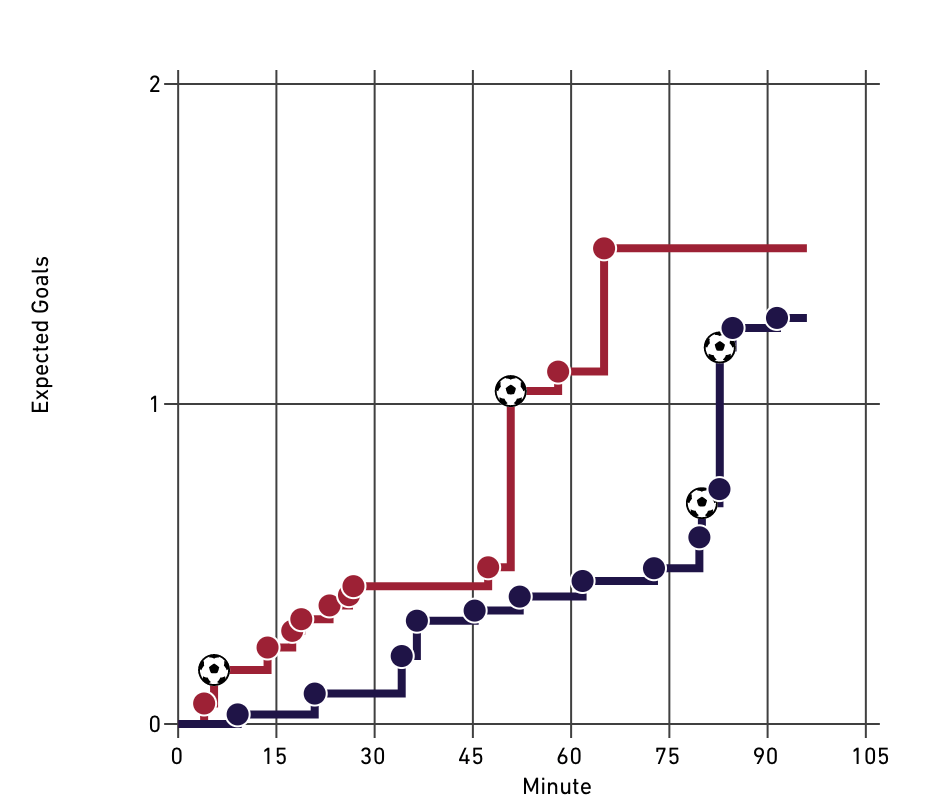 This game, on the other hand, felt like one in which NSC didn’t get a ton done until the sense of urgency was ramped to 11. The xG raceplot actually stays a bit closer than I’d have expected: