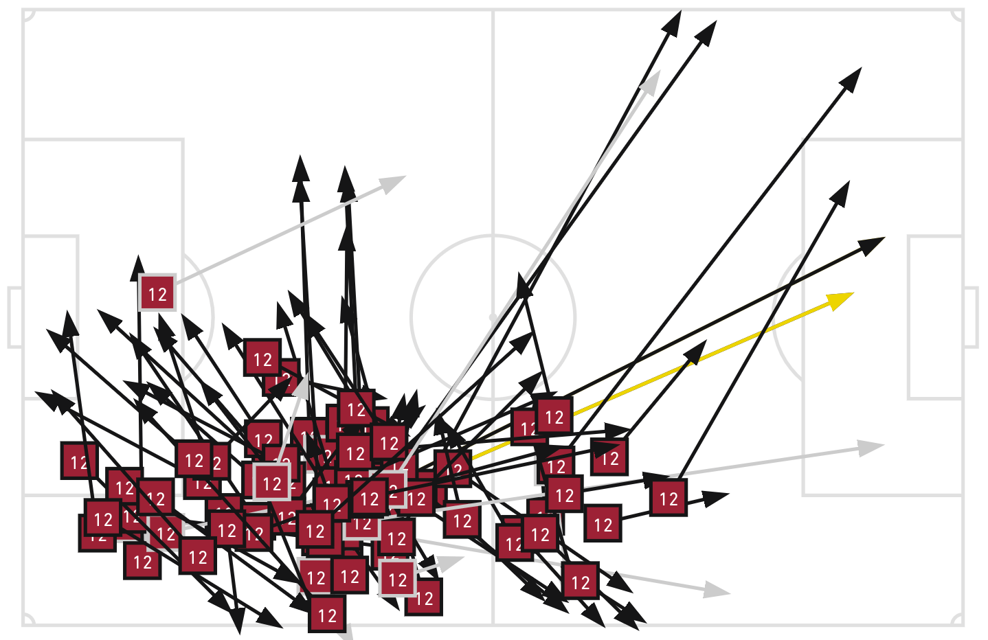 Gary Smith specifically noted after the game that Miles Robinson’s distribution gave his club trouble. So let’s take a look at the US International’s passmap from the game. A particular type of pass is clearly going to jump out at you: