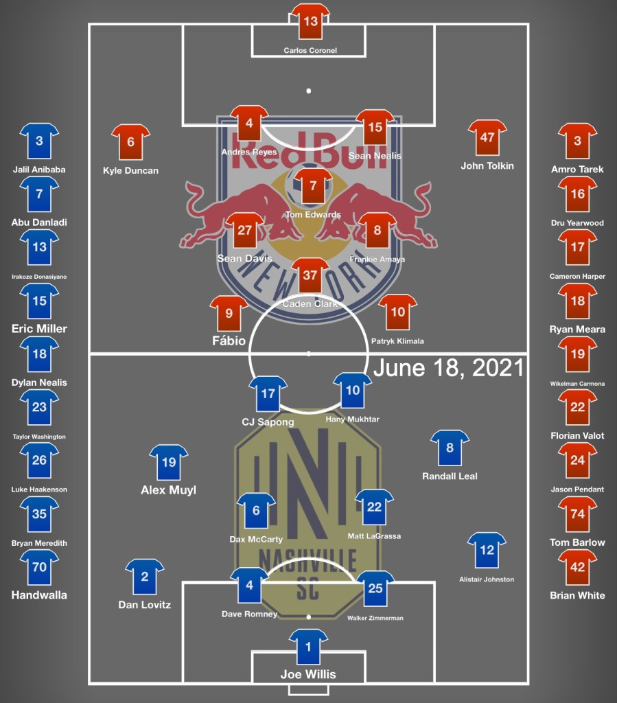 - 75′ RBNY Substitution – On 74 Tom Barlow, off 9 Fábio