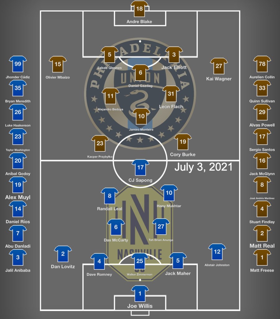 It may well have been Nashville that found another tally, in fact – with Philly’s Olivier Mbaizo doing the honors. A 71st-minute pass across the face of goal didn’t see Randall Leal find his intended target (Sapong on a far-post run), but Mbaizo’s clearance rung the inside of the goalpost before he was able to corral his own rebound and clear for a Nashville SC corner.