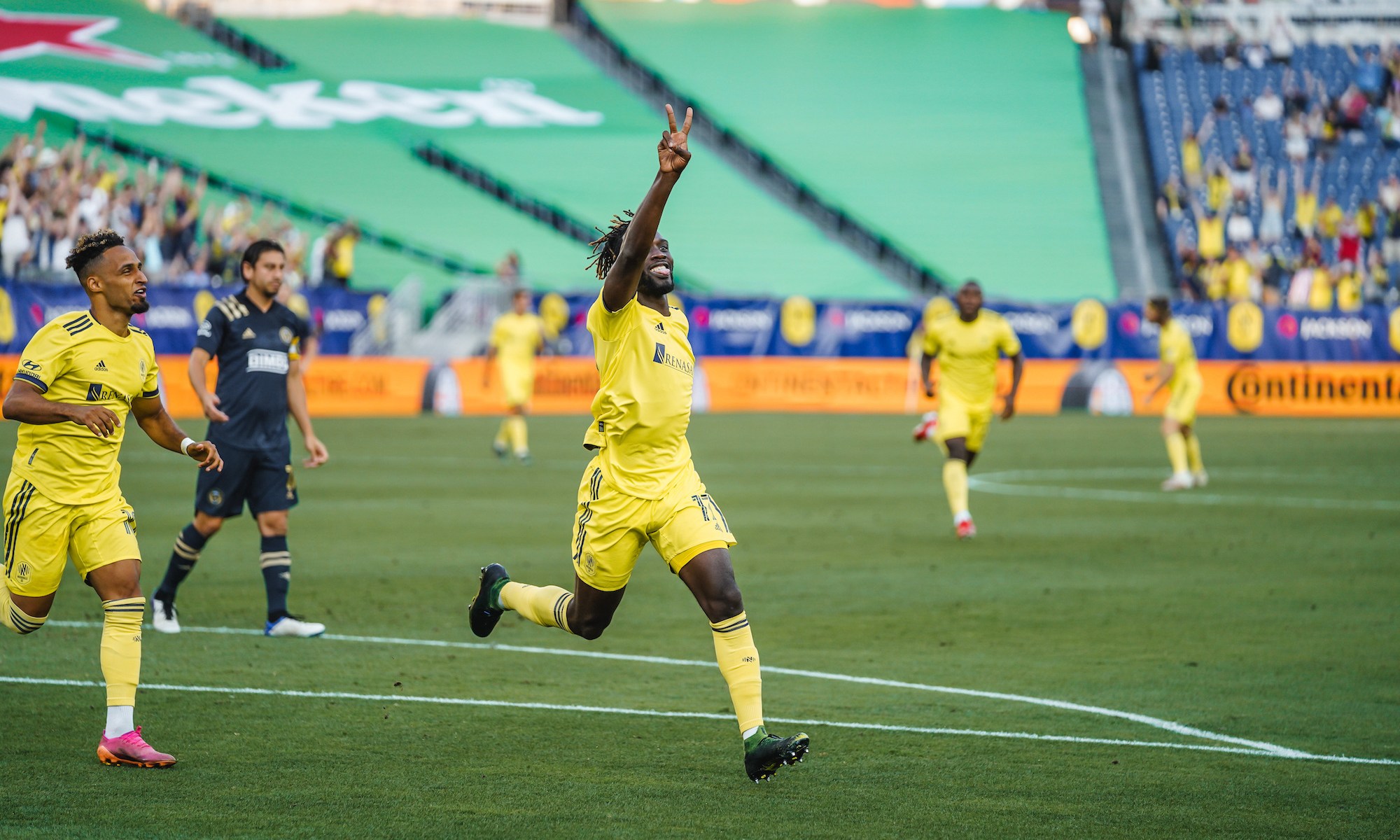 Nashville switched its tactics in comparison to recent games – head coach Gary Smith combatted the Union’s diamond midfield with a three-man backline that gave the team width against an inherently narrow formation. Sapong benefitted, with midfielder Randall Leal sliding him a pass from the wing in a breakaway situation.