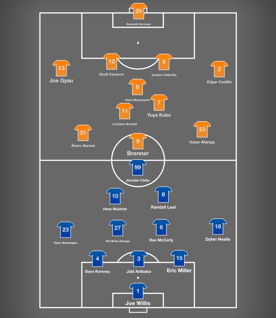 OUT: F Dom Badji (ankle) M Aníbal Godoy (hamstring), D Dan Lovitz (protocols), D Jack Maher (protocols), D Walker Zimmerman (hamstring)