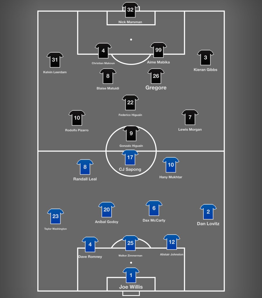Gregore and Blaise Matuidi are the first-choice central midfielders. The former is below-average in just about everything except interrupting, according to ASA‘s Goals Added, so having him run around and be a midfield destroyer to help cover for the weakness on the backline probably makes some sense. Matuidi is bad at just about everything – he’s the 28th-worst player in MLS per G+, which would be impressive if not for the fact that two teammates grade out worse – so, uh, well best of luck to him, I guess.