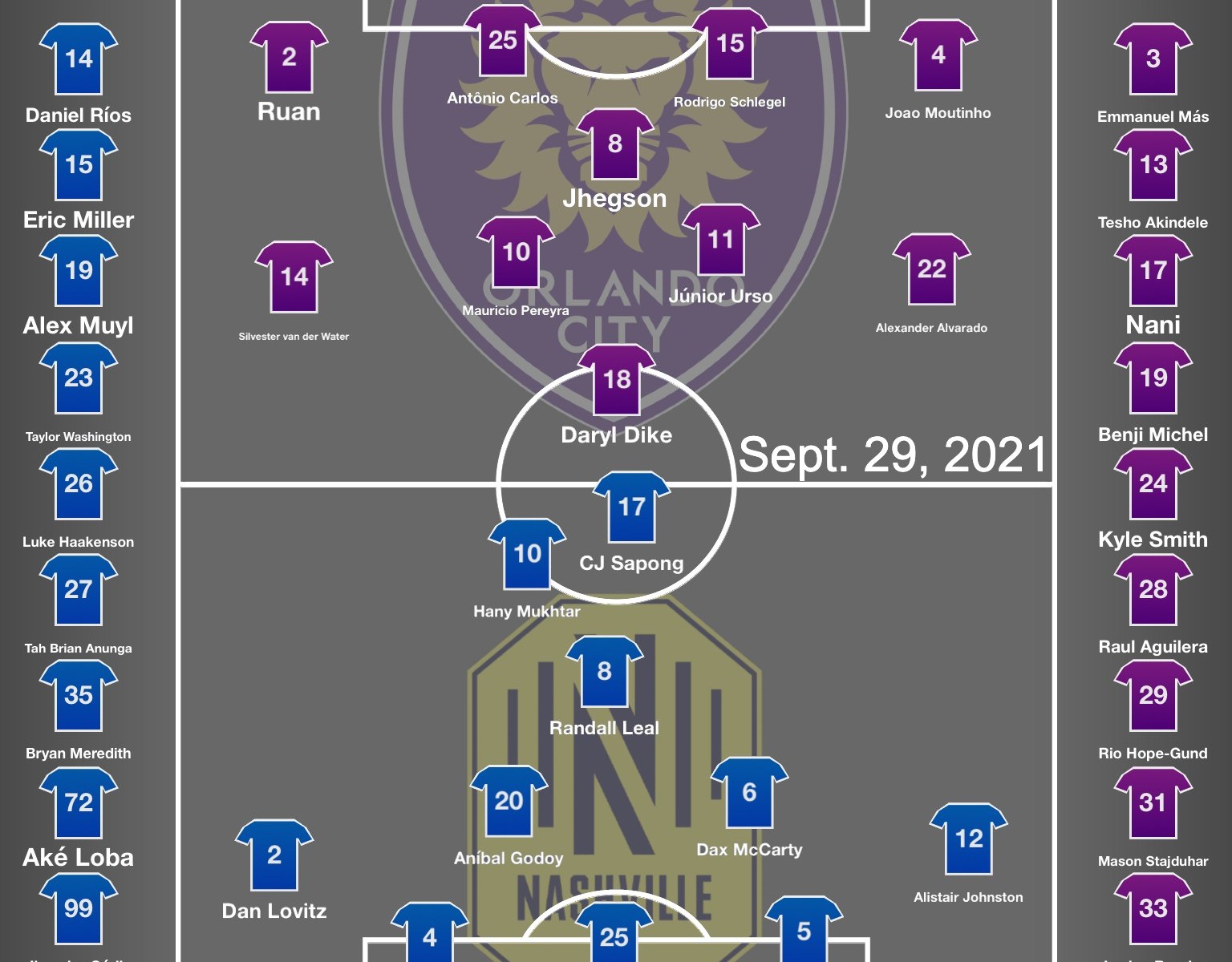 The letdown looked like it would be brief, with Nashville showing some assertiveness deep into second-half stoppage time, but the Lions were able to make it complete in the third added minute. With Nashville trying to kill clock by taking the ball to the corner, Orlando’s Mauricio Pereyra cleared the ball out of bounds, where it struck substitute striker Aké Loba’s foot. The assistant referee deemed that the contact occurred before the ball had completely crossed the line, starting an Orlando spell of possession that resulted in a corner – against the protestations of Nashville SC players who insisted the ball last struck Tesho Akindele.