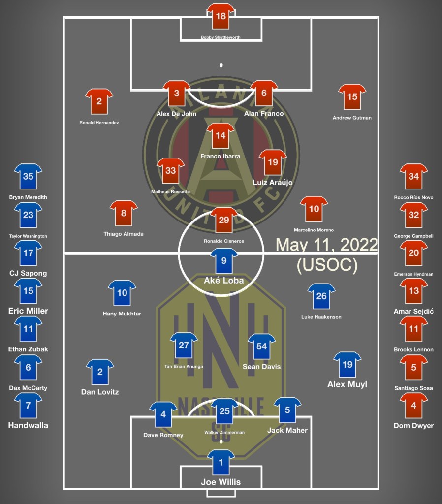 - 58′ ATL Substitution – On 11 Brooks Lennon, off 15 Andrew Gutman (injury)