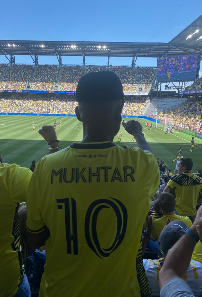 On this afternoon, the first home game in the new stadium, when Hany looked for Ashley, he saw Abubakr and Ursula, who’d flown in from Berlin. Abubakr wore a gold number 10 jersey, “Mukhtar” splashed across the back. When he caught Hany’s eye in warmups, he held out a fist and smiled. Growing up in Khartoum, dreaming of a career as a footballer, perhaps Abubakr could’ve pictured Hany’s life as his own — the number 10 shirt, the MVP award, a city that holds its breath every time you touch the ball. But he achieved something just as good. He gave his son the chance to live that life instead.