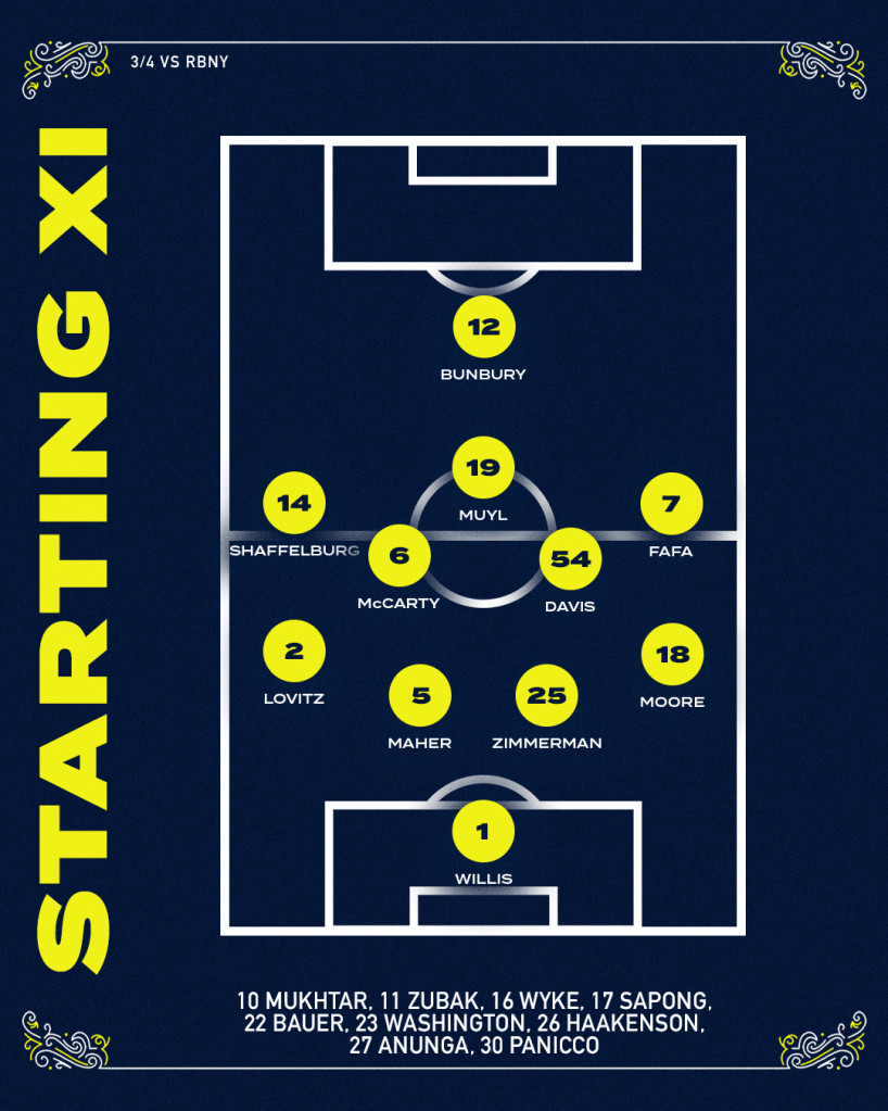 - 53′ RBNY Substitution – On 7 Cory Burke, off 74 Tom Barlow