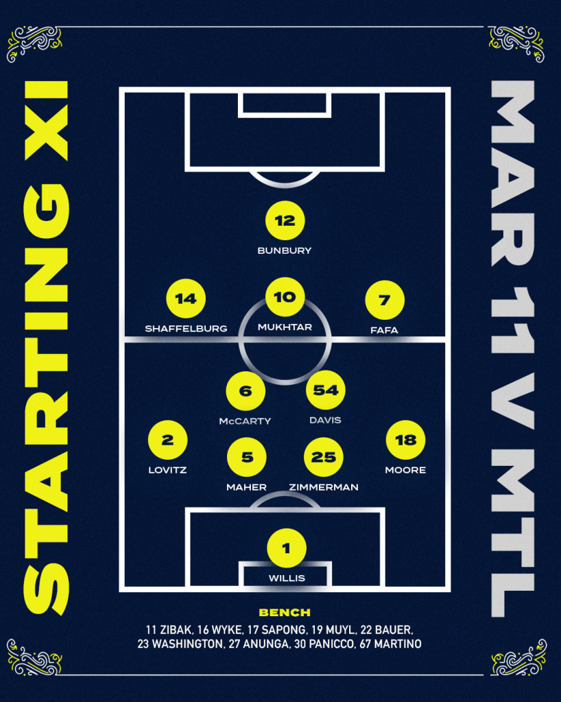 Reigning league MVP Hany Mukhtar was the orchestrator of Shaffelburg’s 37th-minute goal. Mukhtar collected a ball in his own half, and drove at the Montreal defense on a counter-attack. With three-on-two advantage, he slide a pass to his left for Shaffelburg to finish, bar-down to give Nashville SC the lead.