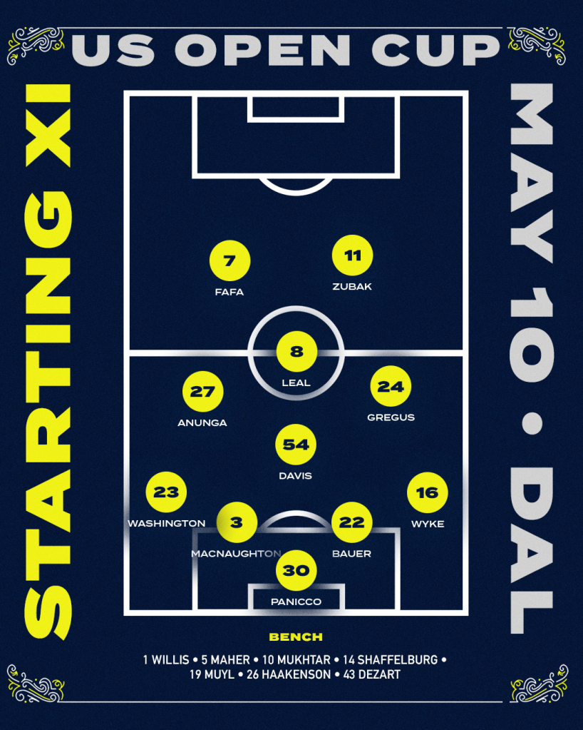 Picault’s opener was a lovely sequence of play for the former FC Dallas player in his first year as a member of Nashville’s squad. He collected a pass along the left sideline, and pressed toward goal. Inside the Dallas penalty area, he opted not to slide a pass across to Ethan Zubak or Luke Haakenson in the box, but rather to cut a defender and fire far post. The veteran was rewarded with his second goal contribution of the tournament after assisting Zubak on Nashville’s lone tally in the win over San Antonio FC.