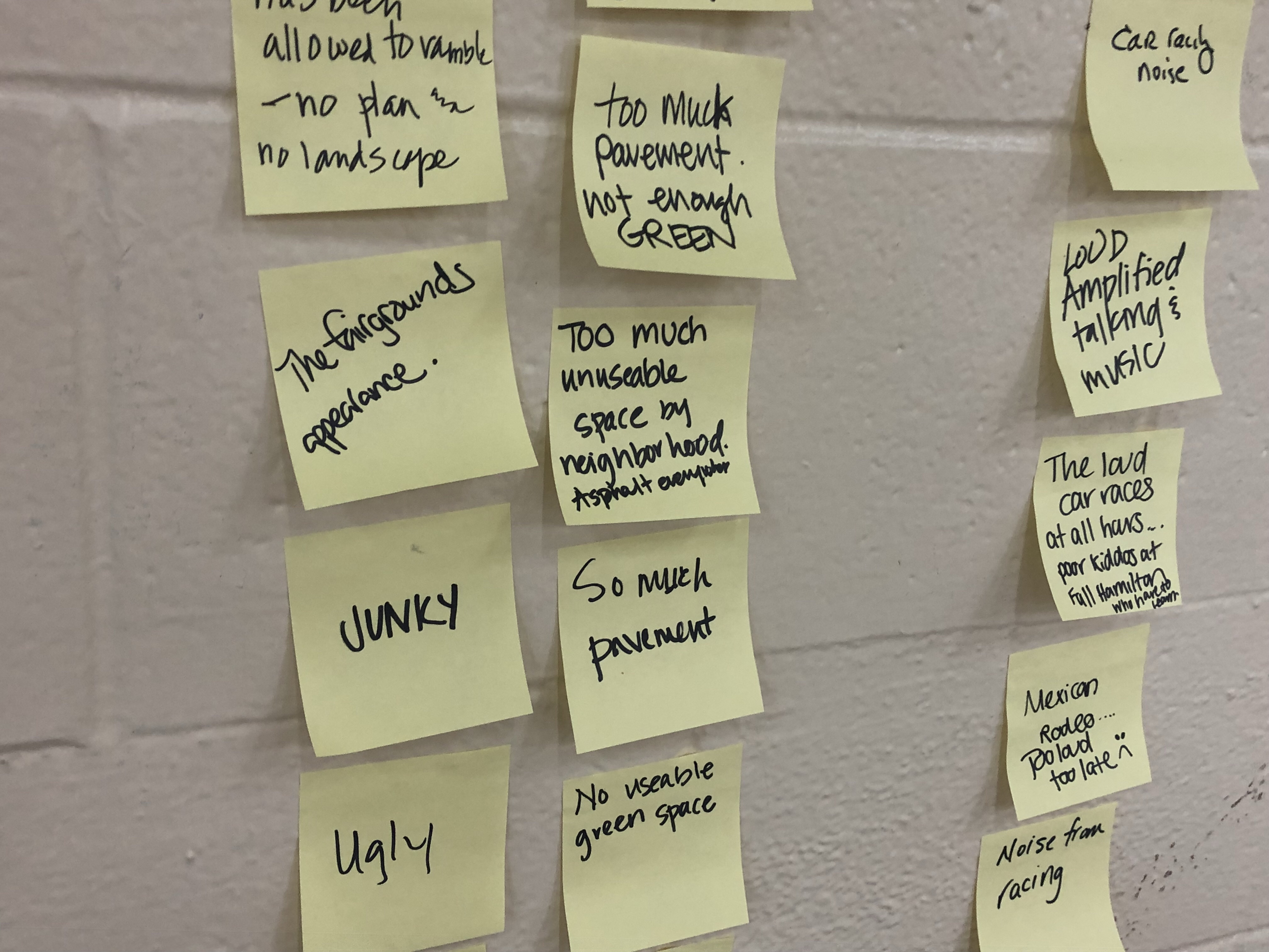 Post-its describing the current Fairgrounds situation
